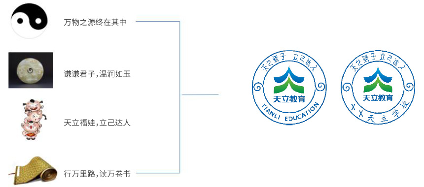 釋義:天命之謂性,率性之謂道,修道之謂教?!疤臁?,《說(shuō)文解字》釋義為“至高在上,從一大也?!笔侵腥A文化信仰體系的一個(gè)核心,是指自然萬(wàn)物、宇宙法則?!疤熘溩印币庵竷?yōu)秀杰出的人。天立教育廣納群賢,成就德才兼?zhèn)洹⒂绊懮钸h(yuǎn)、桃李天下的一流名師;天立教育以生為本,培養(yǎng)熱愛家國(guó)、頂天立地、有責(zé)任能擔(dān)當(dāng)民族復(fù)興大業(yè)的卓越人才。