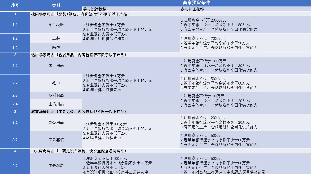3. 財務能力:近三年財務報表情況良好,近半年公司或法人代表銀行流水平均余額不低于各品類要求(按全年預估采購額一定比例確定)。