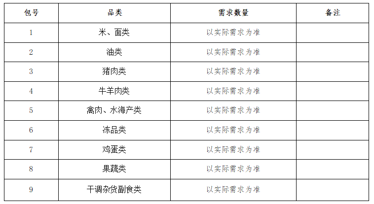 食材采購項目公告